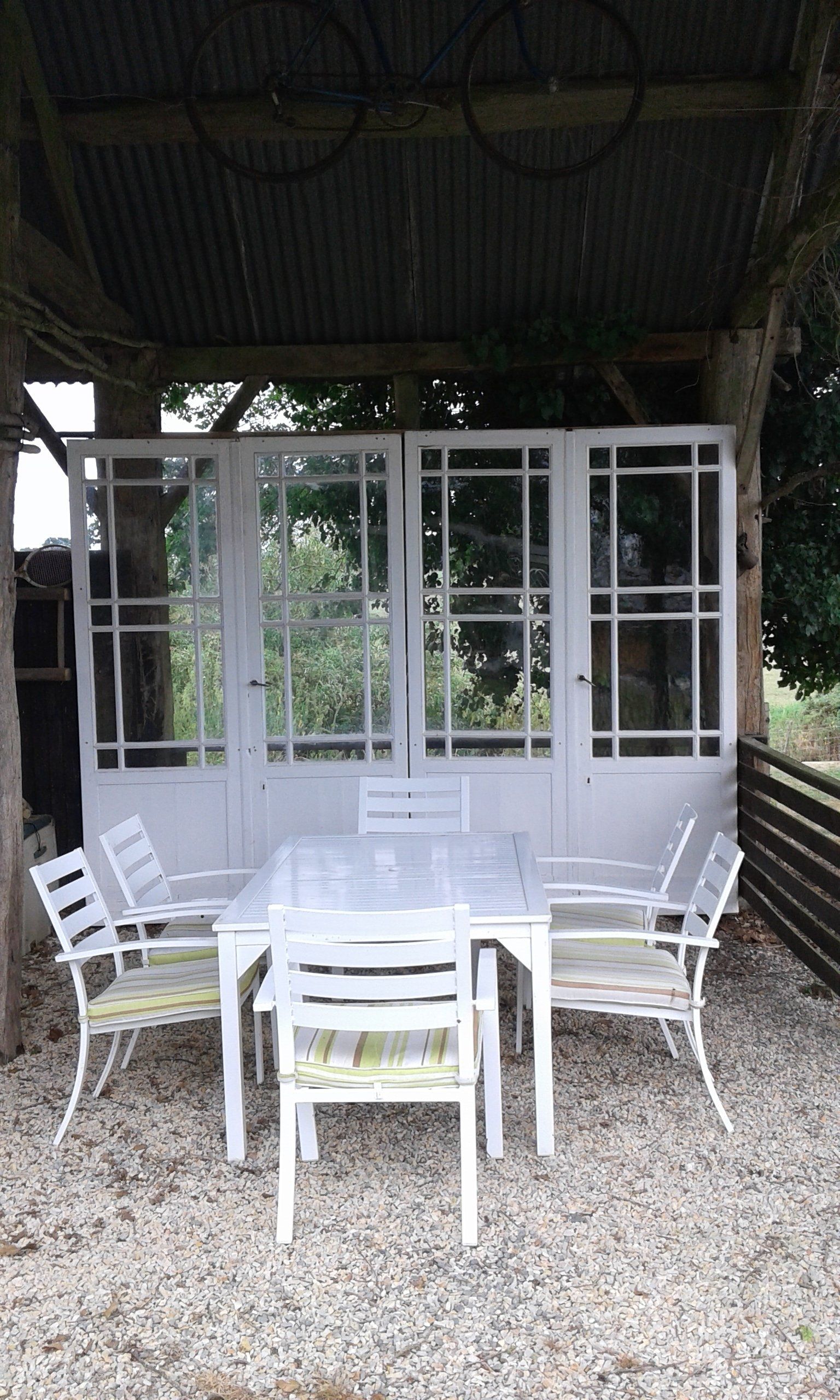 Outdoor room / open sided shelter, with games area & shaded dining table